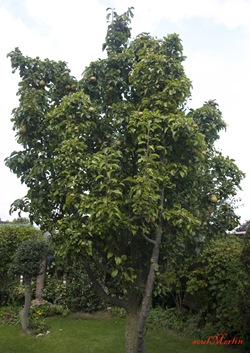 Last Sunday, Liz and I were pottering around in her back garden when I noticed that the pear trees were in fruit. It made a lovely sight and as I tried to capture the moments of sunlight with my camera, Liz told me how the trees came to be planted.